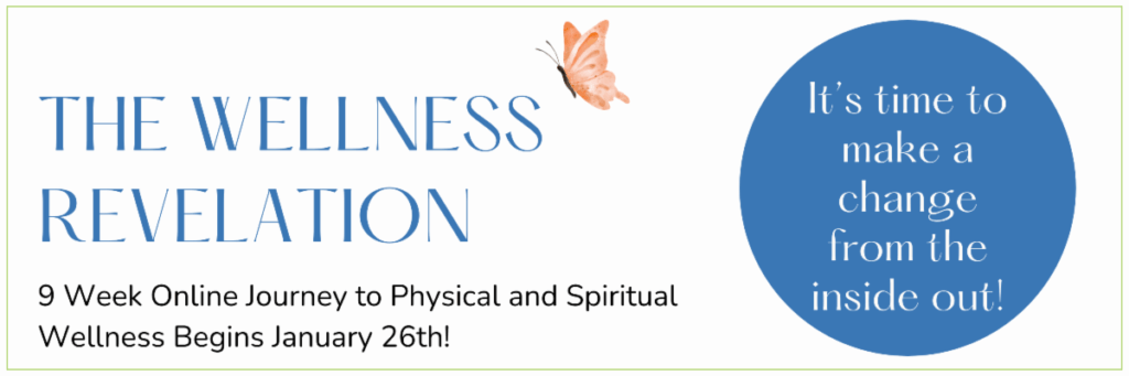 Join us as we learn how to change our relationship with food and our body. In the 9-week Wellness Revelation course, we discuss God’s original design for healthy living and learn how to move away from neglecting or obsessing about food. It’s time to make a change from the inside out!